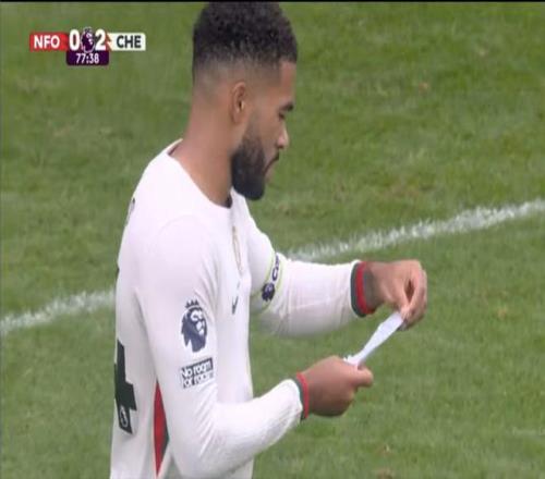 旺仔登場(chǎng)時(shí),將一張紙條交給里斯-詹姆斯,全隊(duì)傳閱,執(zhí)行主帥的戰(zhàn)術(shù)部署。